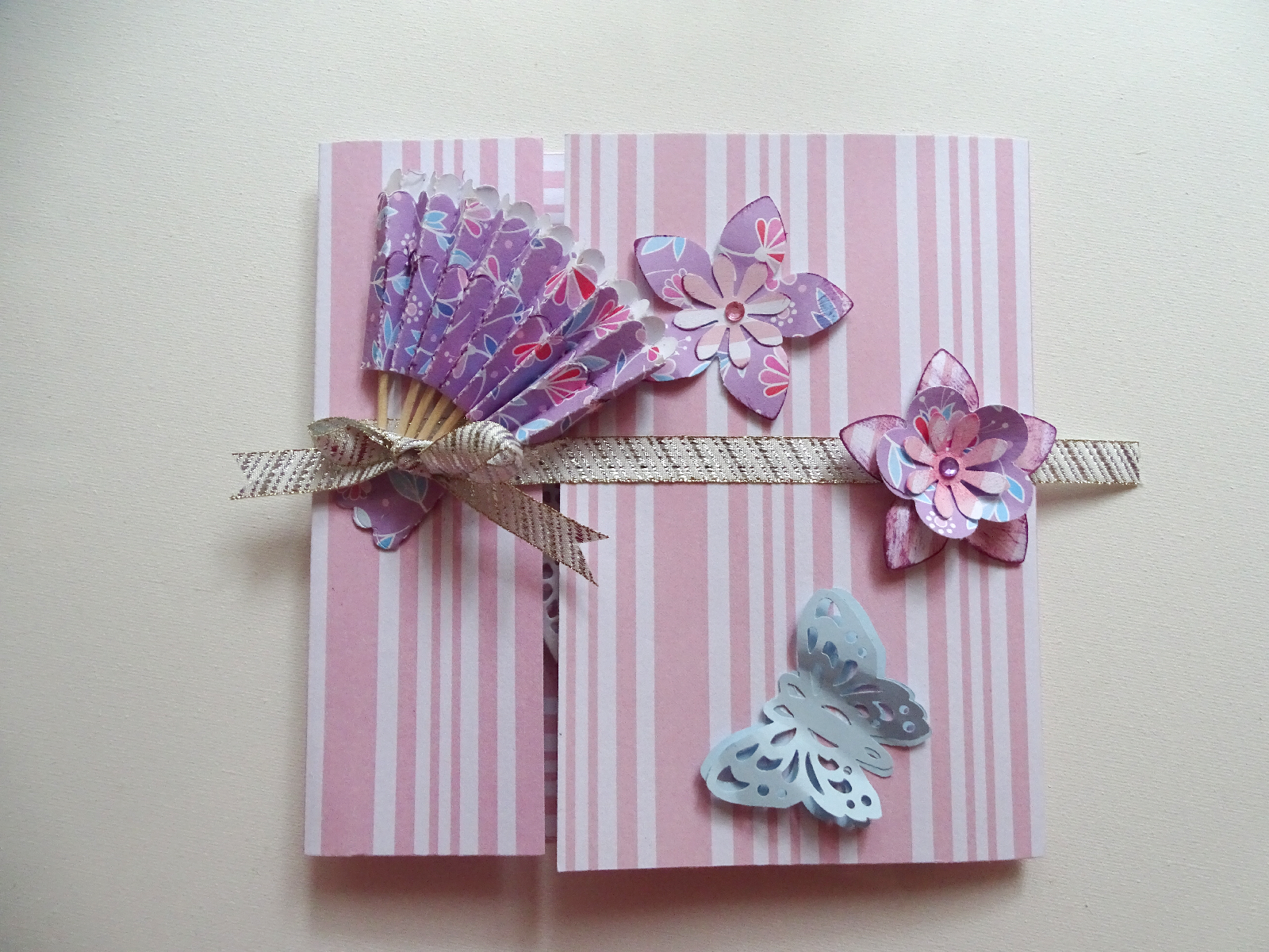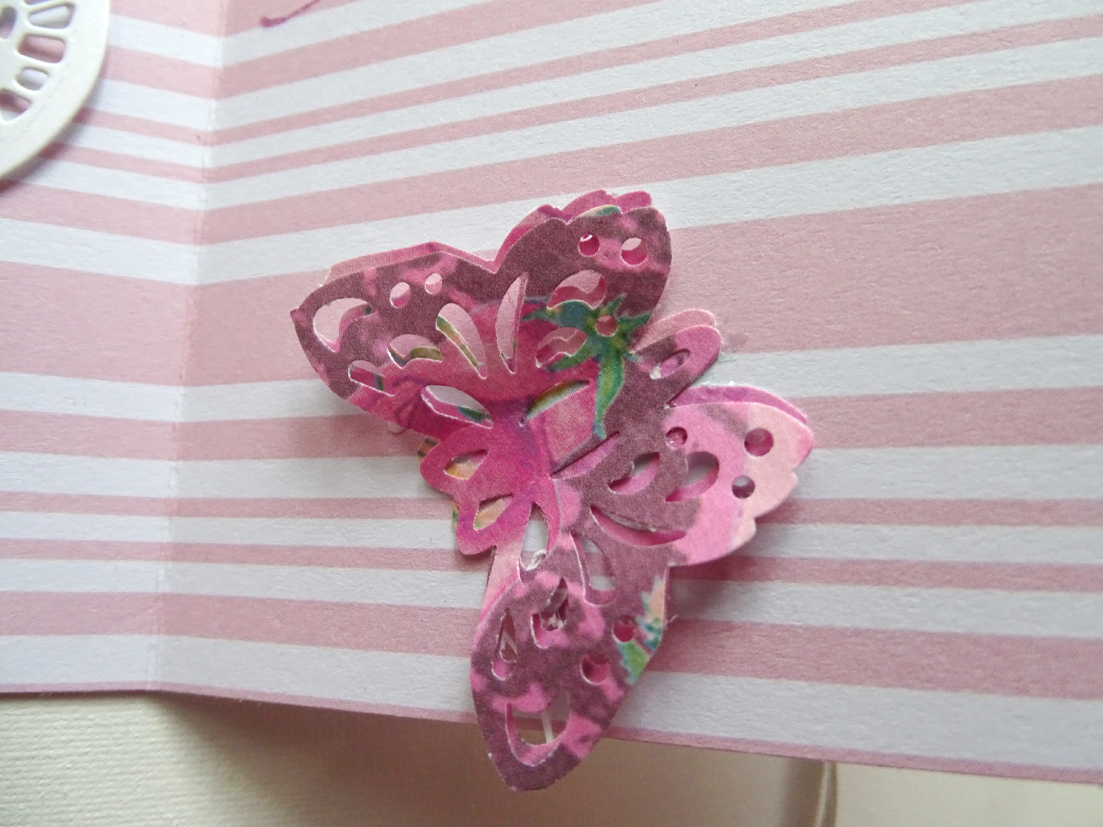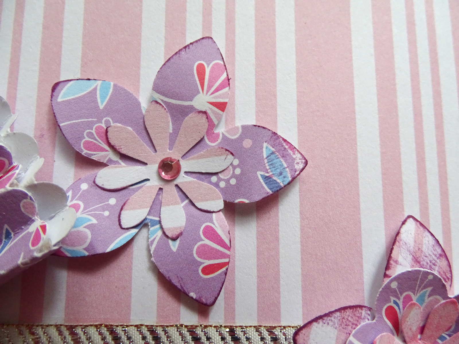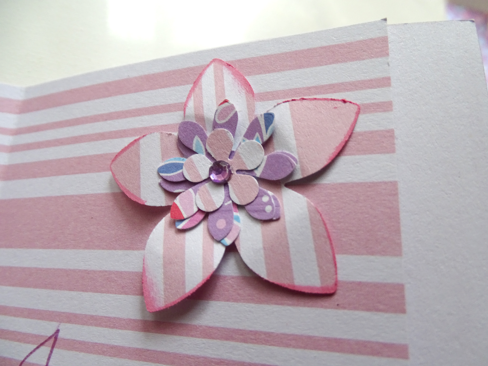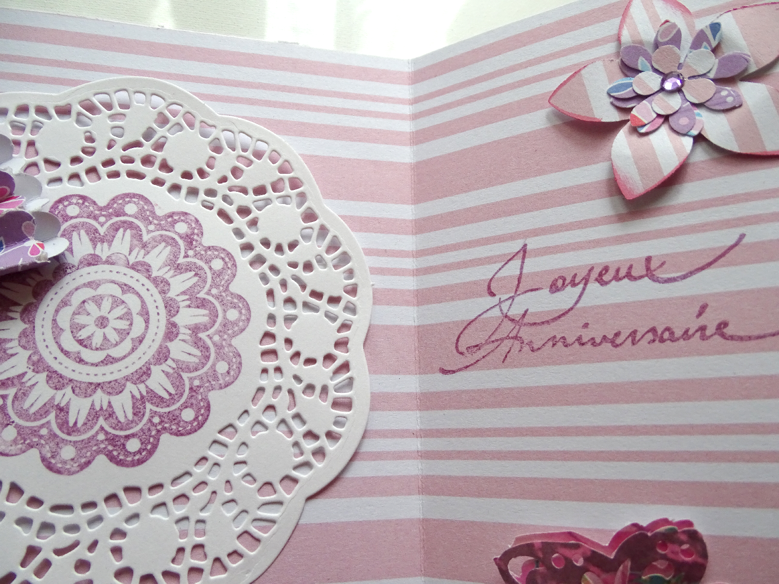 Un joli papier d'un bloc que j'ai posé rayures verticales à l'extérieur et rayures horizontales à l'intérieur de la carte.