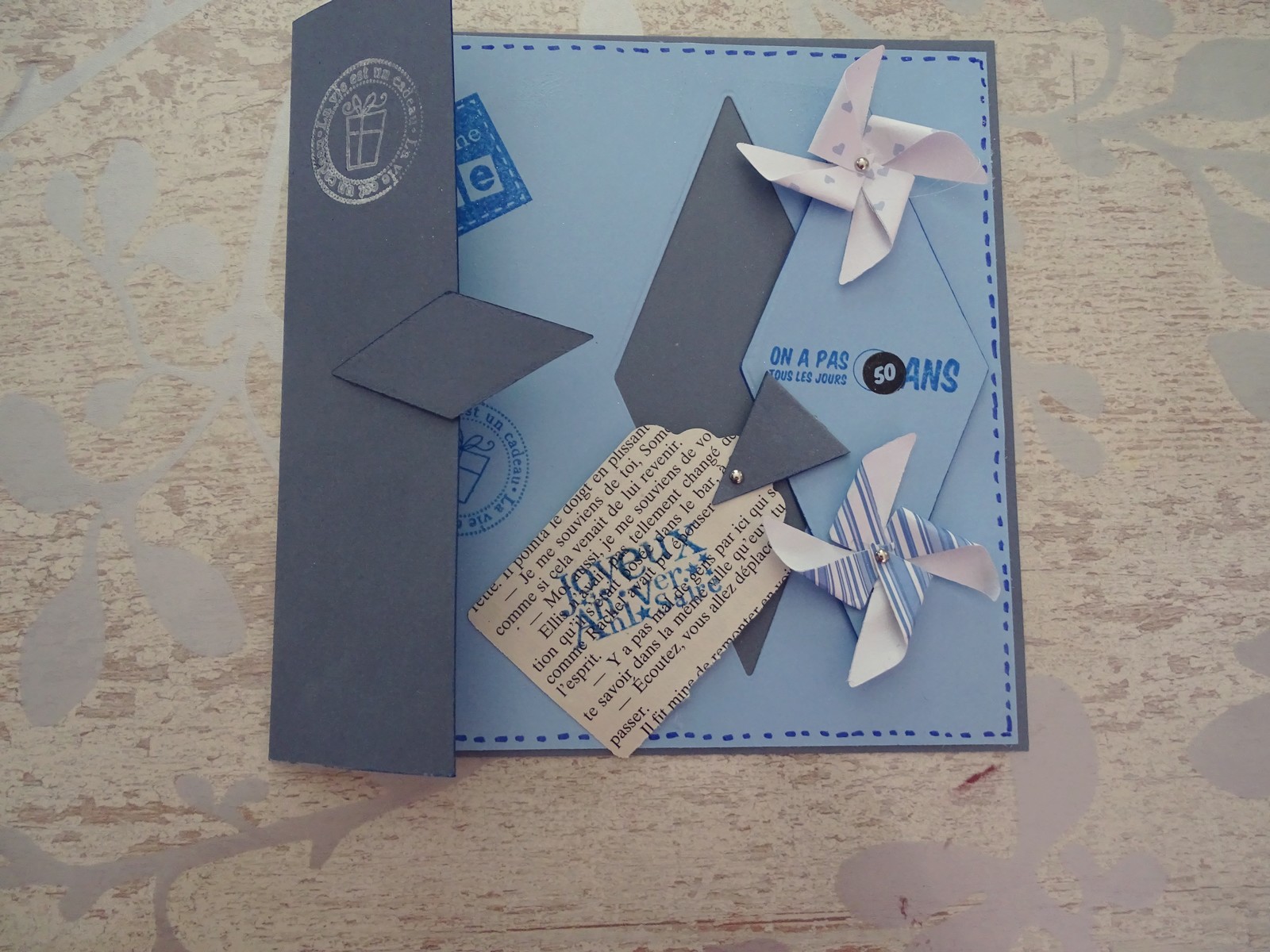 Besoin d'une carte pour souhaiter l'anniversaire d'un tout nouveau cinquantenaire ... à savoir mon plus jeune frère .... Je vous laisse deviner mon âge ! ![]()