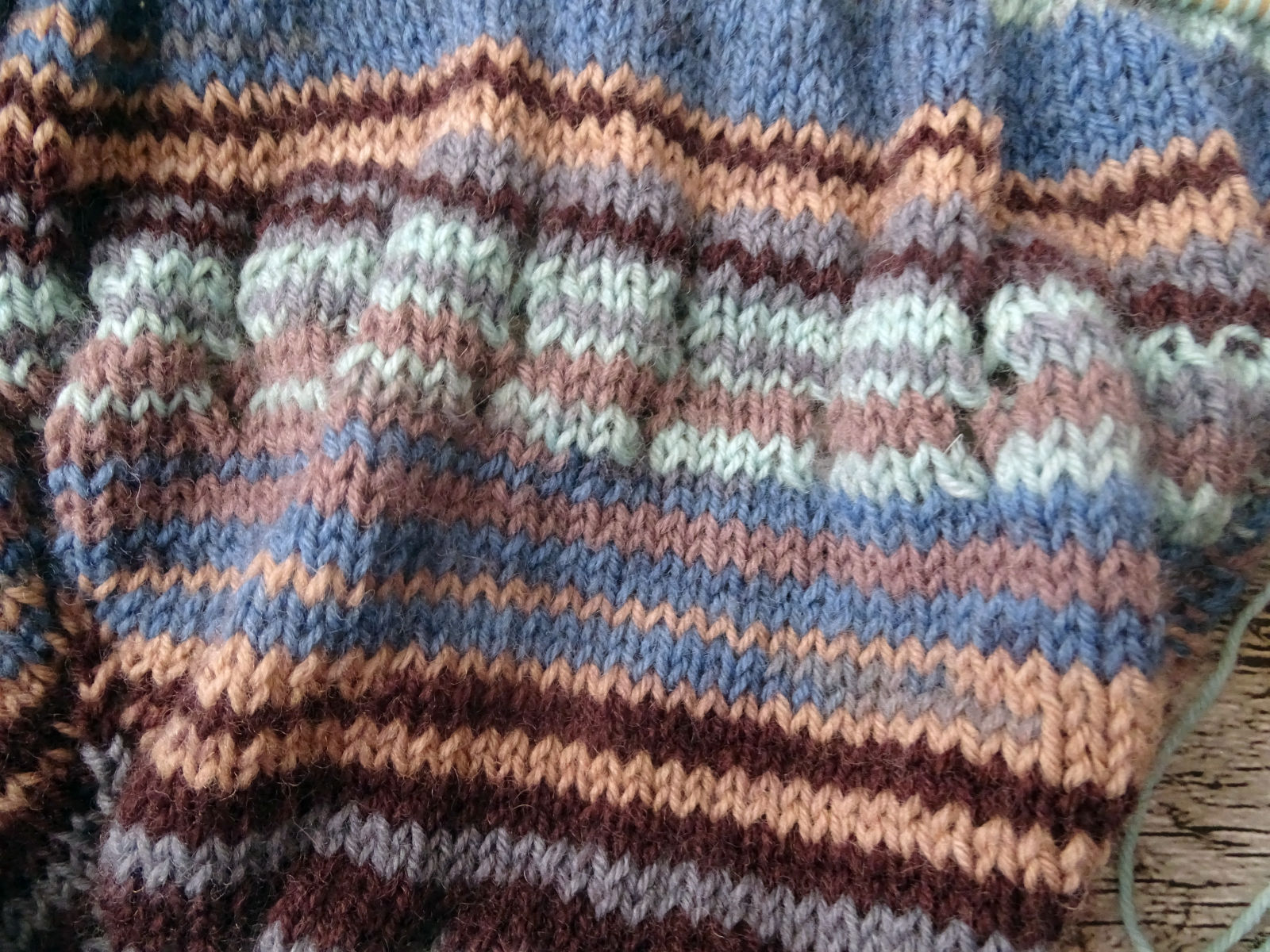 J'aime bien les rayures aléatoires qui apparaissent au fur et à mesure que le tricot monte ... et vous ?