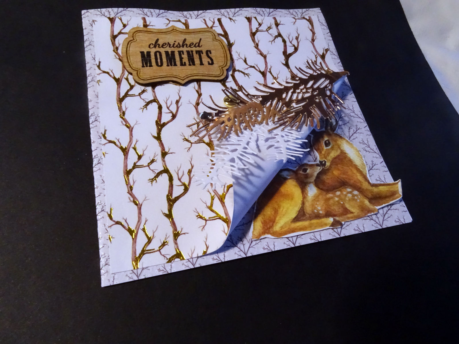 Enfin il fallait faire une carte de Noël avec un pli . Le modèle proposé avait un pli en haut comme un revers de poche .... J'ai voulu changer un peu en faisant un pli qui se relève ....