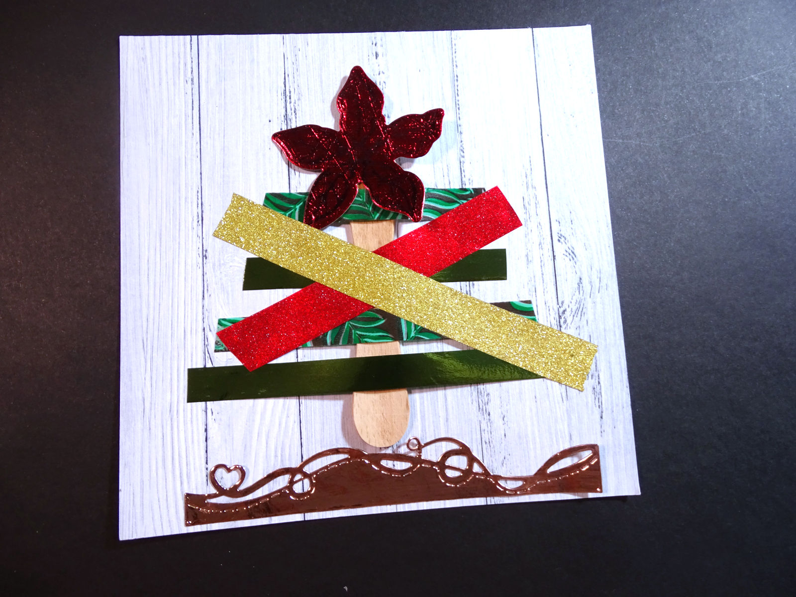 Il fallait faire un sapin rien qu'avec du masking tape ... ouie ouie ouie ... pas facile ! Je me suis exécutée mais n'aime pas le résultat .... (du reste je n'aimais pas le modèle non plus ! ptdr !) mais un défi est un défi !