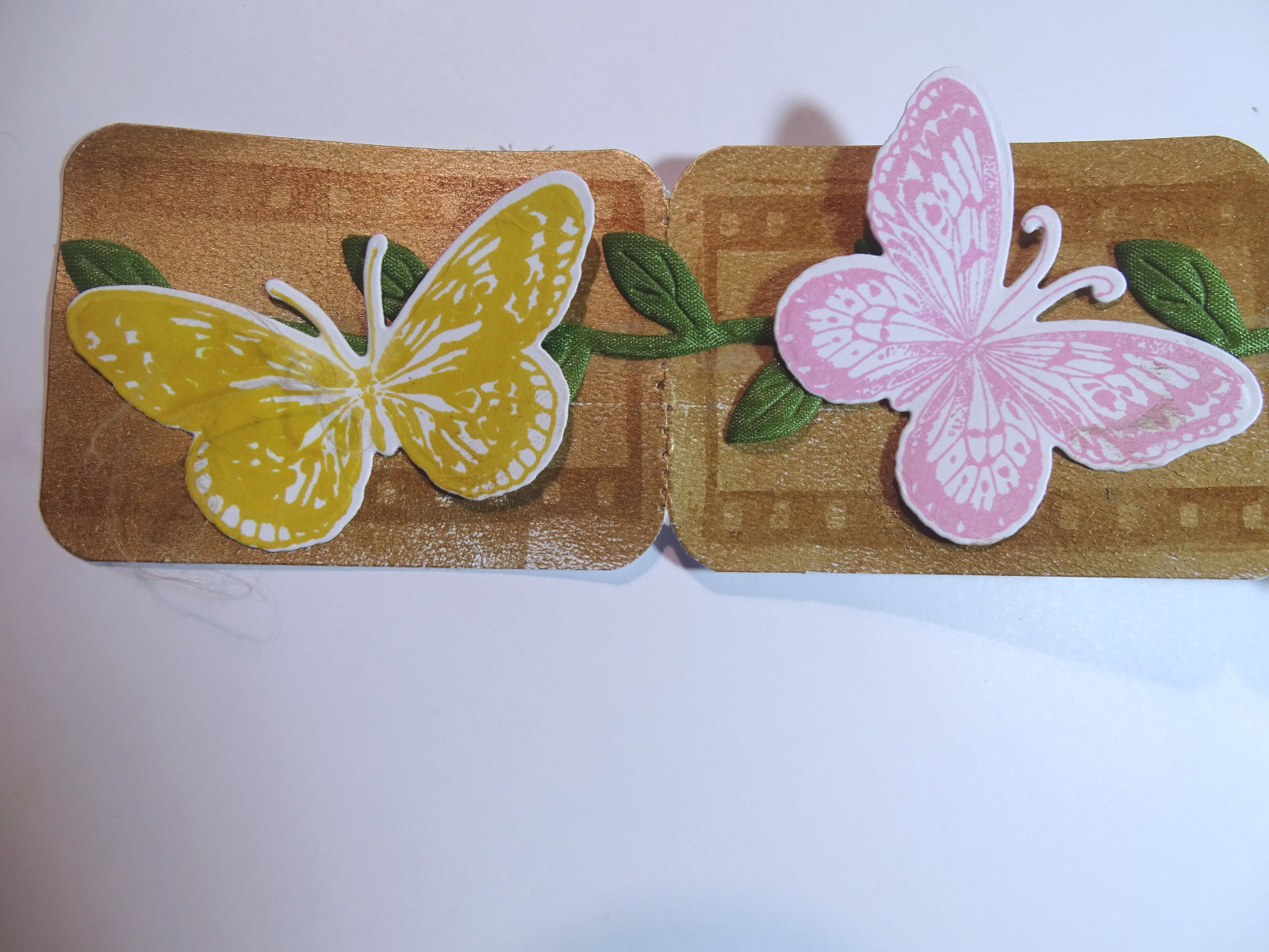 Le fond brun a été vieilli pour un effet contrasté entre le support et la délicatesse des papillons .