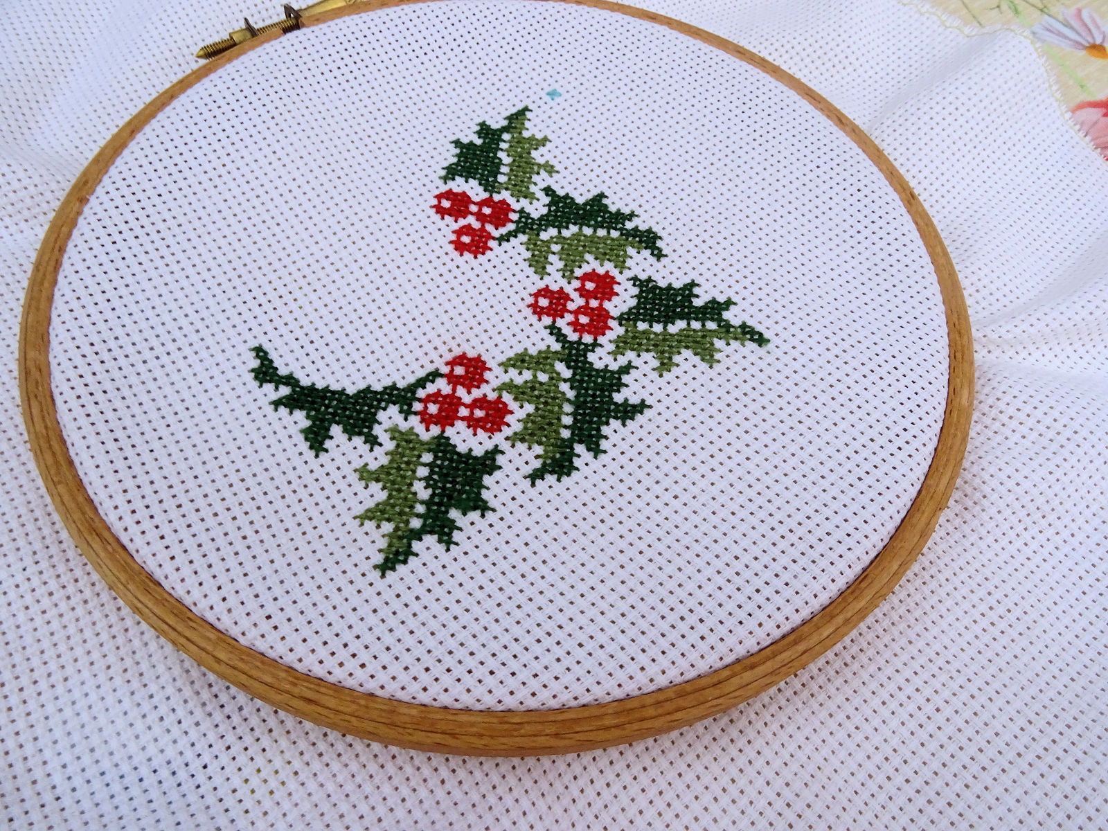 Notre amie Monique, quant à elle, a décidé de commencer à broder pour Noël en faisant un joli biscornu ou un coussinet (elle n'a pas encore décidé du montage définitif) pour mettre dans le sapin :