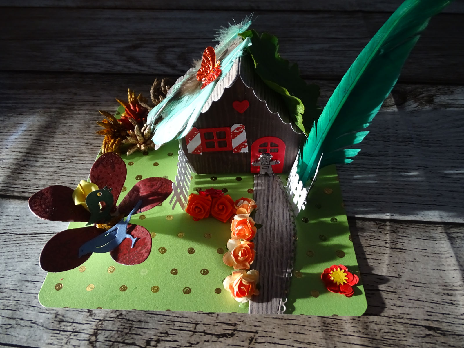 Plumes pour le toit et pour décorer le jardin, quelques petits bidules d'un pot pourri spécial automne qui va bien avec mon thème !