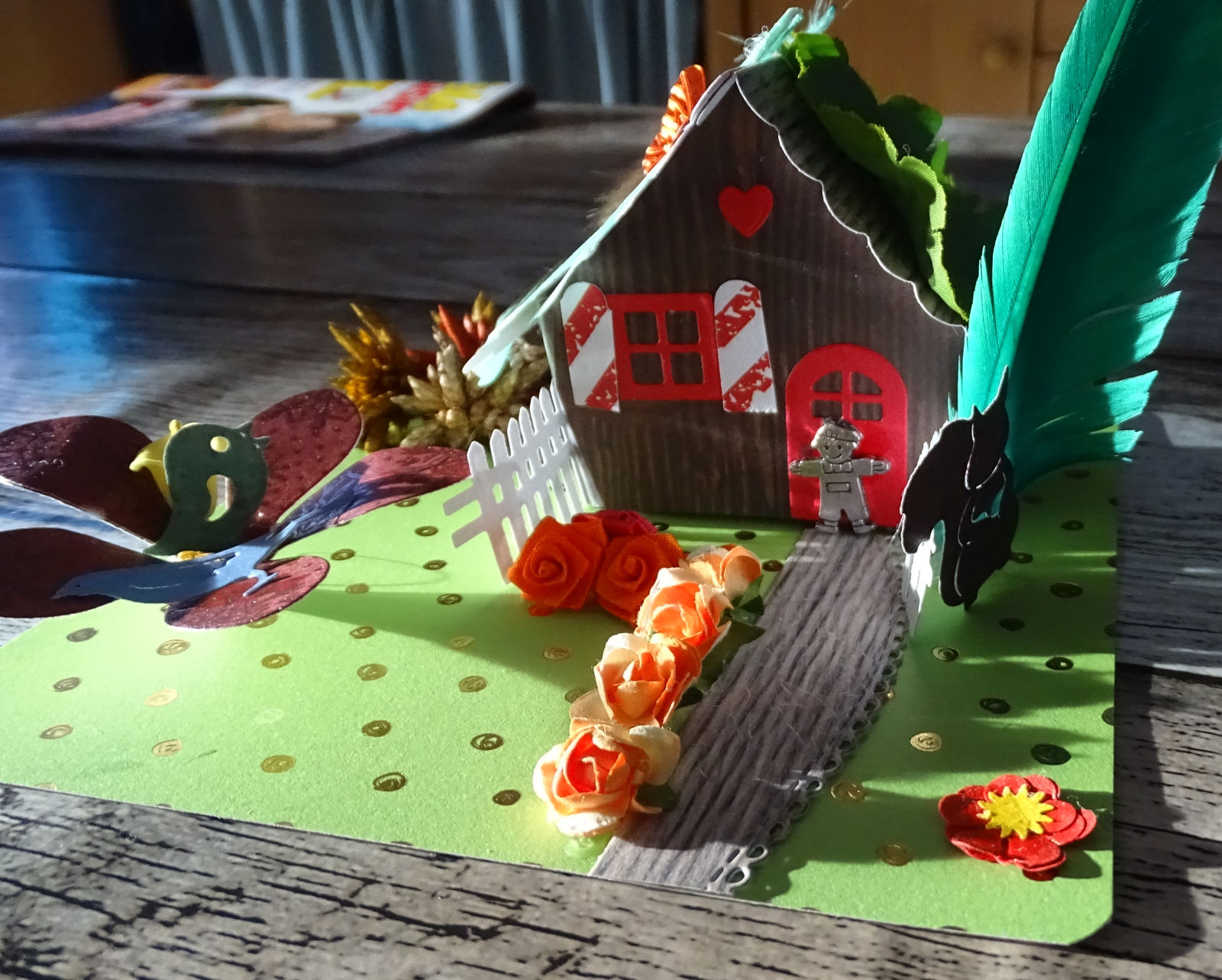 J'ai eu envie d'essayer de fabriquer une maisonnette en papier ... du style maison de lutin cachée dans la forêt ! lol