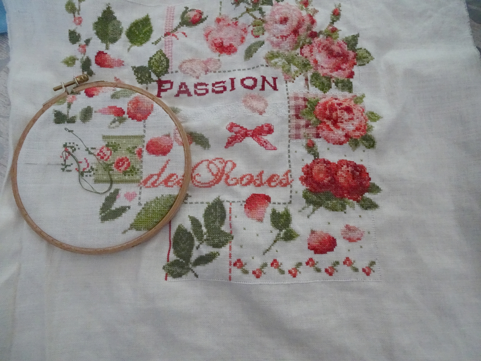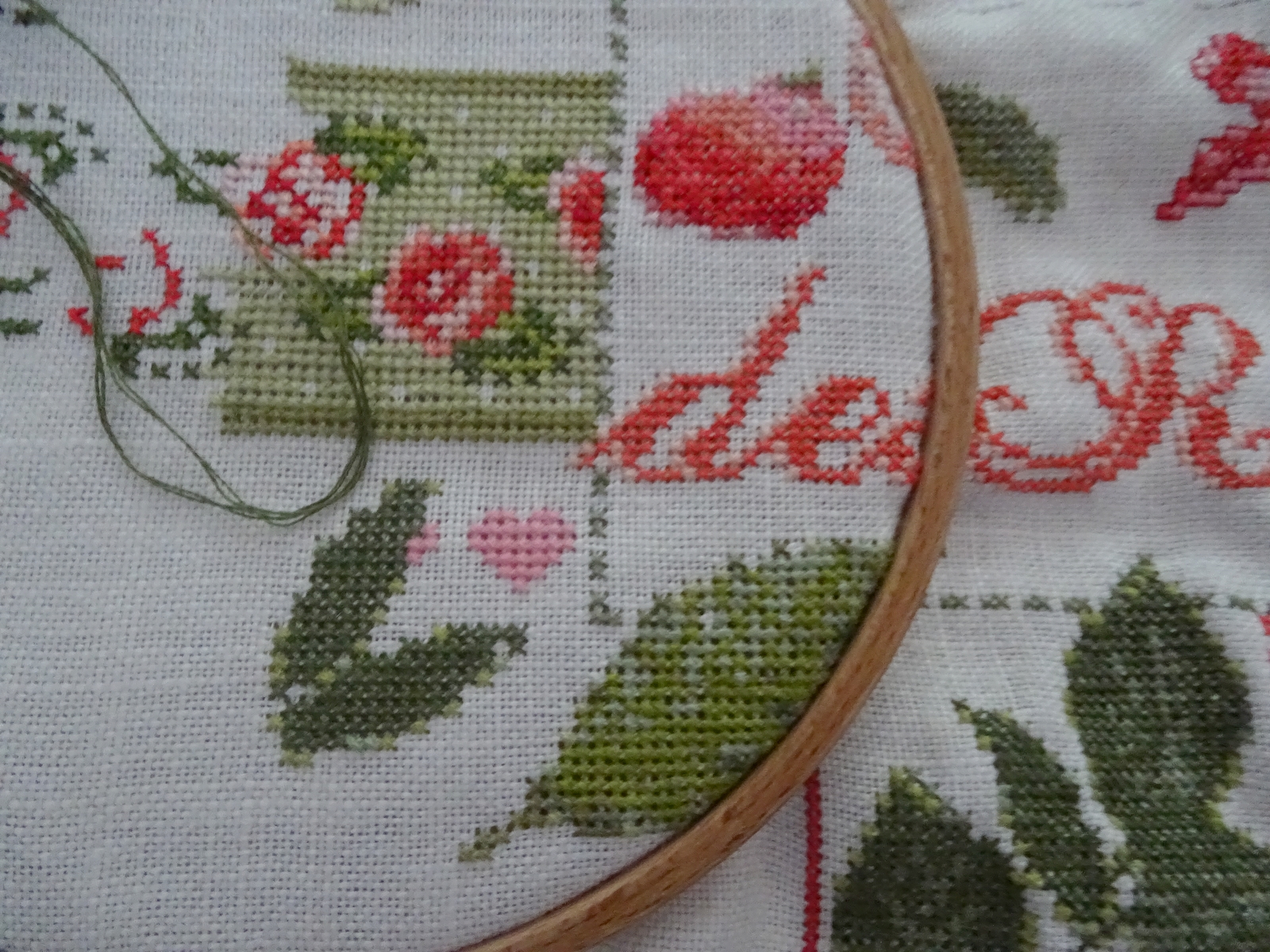 J'ai beaucoup cousu et de ce fait je n'ai pas pu broder autant que je le pensais faire ... Mais bon une petite croix après une petite croix et voilà où j'en suis arrivée :
