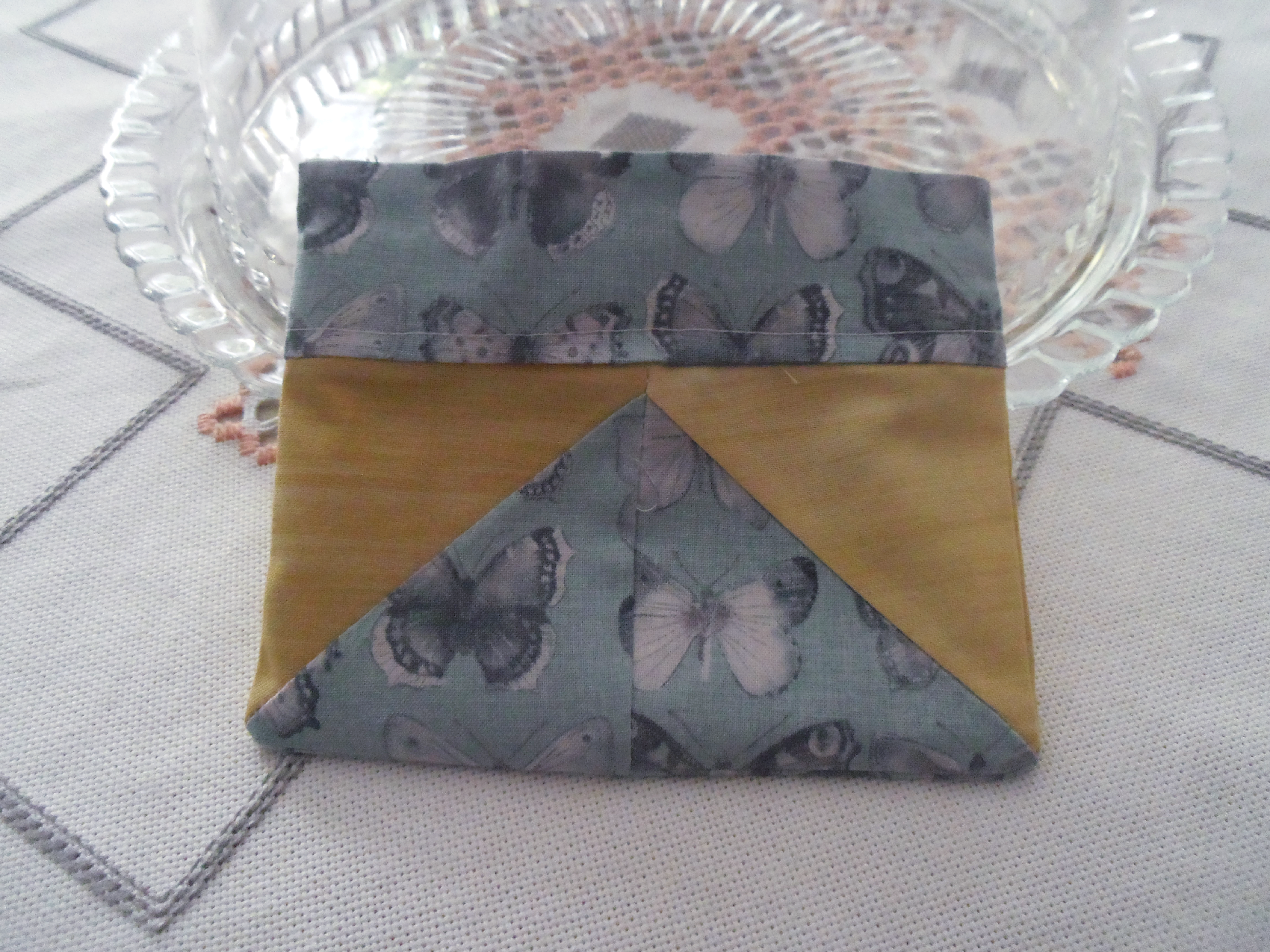 Pour bien centrer les morceaux et bien faire correspondre les pointes, j'ai décidé de faire une petite pochette ....