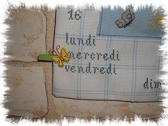"On " notera le détail qui tue : les boutons de nacre pour accrocher les mois ! Je vous ferais voir les autres mois au fur et à mesure de l'avancée de l'année !